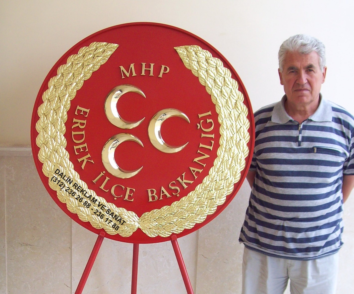 90 cm çapında komple kabartma prinç aksesuarlı klasik gövdeli çelenk