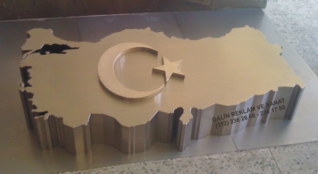 100*200 cm, Prinç Ay Yıldız Montajlı Paslanmaz Çelik Türkiye Haritası,